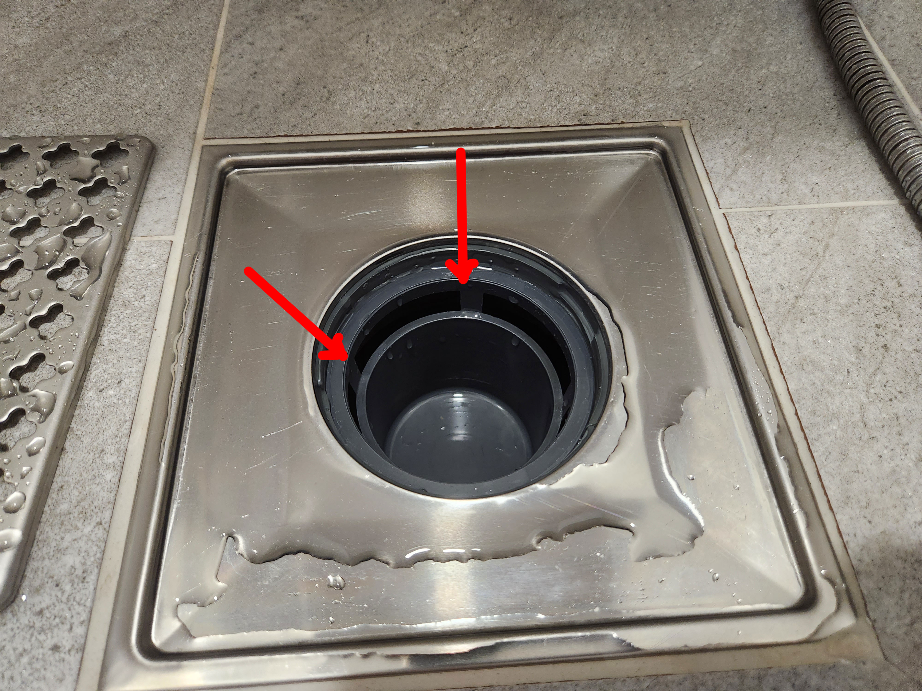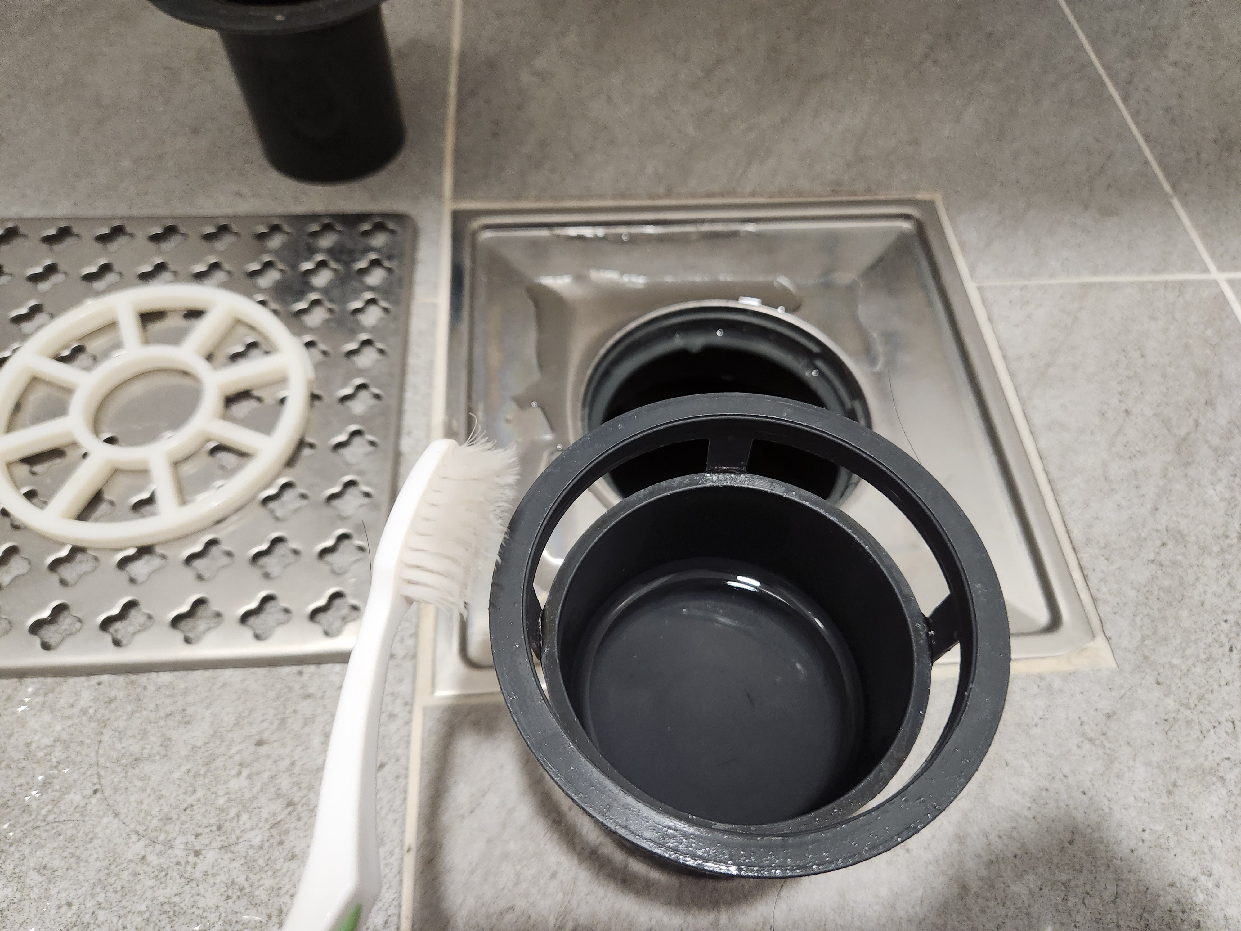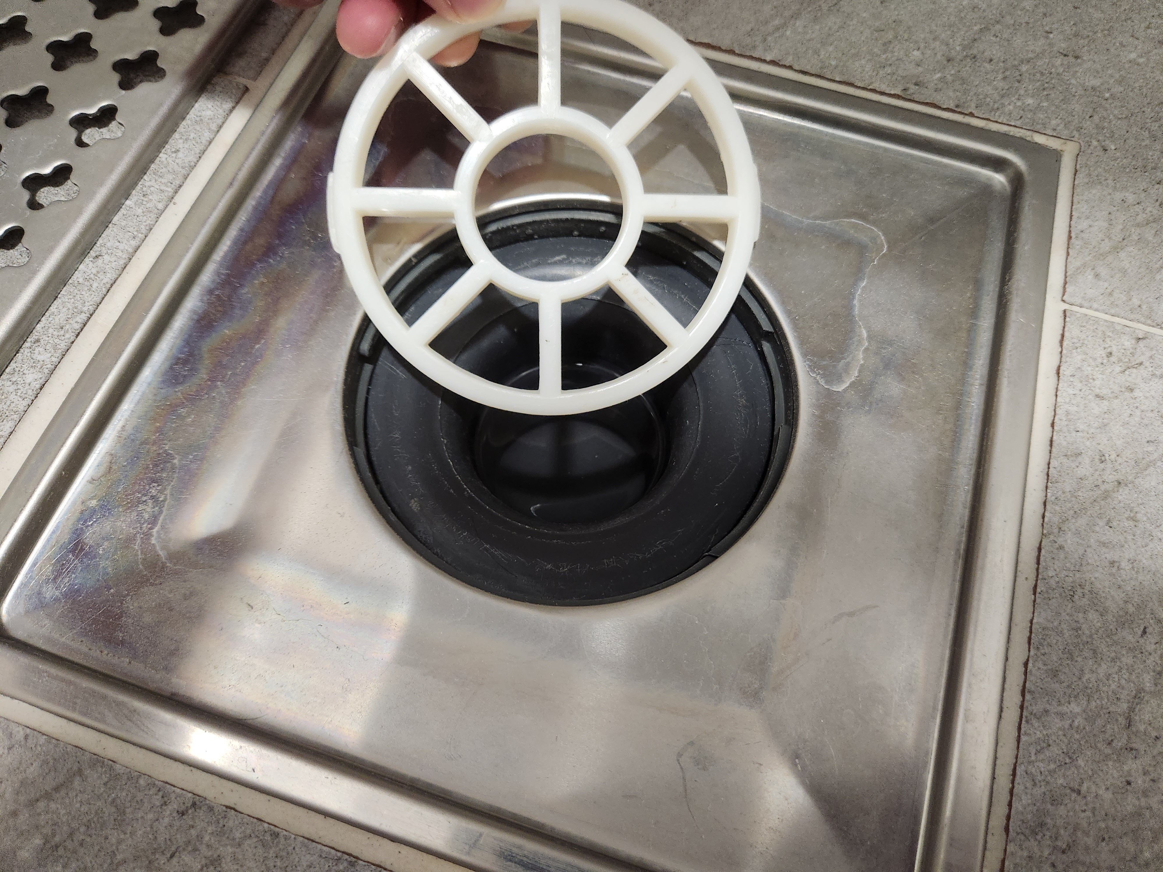 일단 저 흰 녀석은 머리카락등을 1차적으로 걸러주기도 하고, 안쪽 배수구를 고정해주는 역할도 합니다.