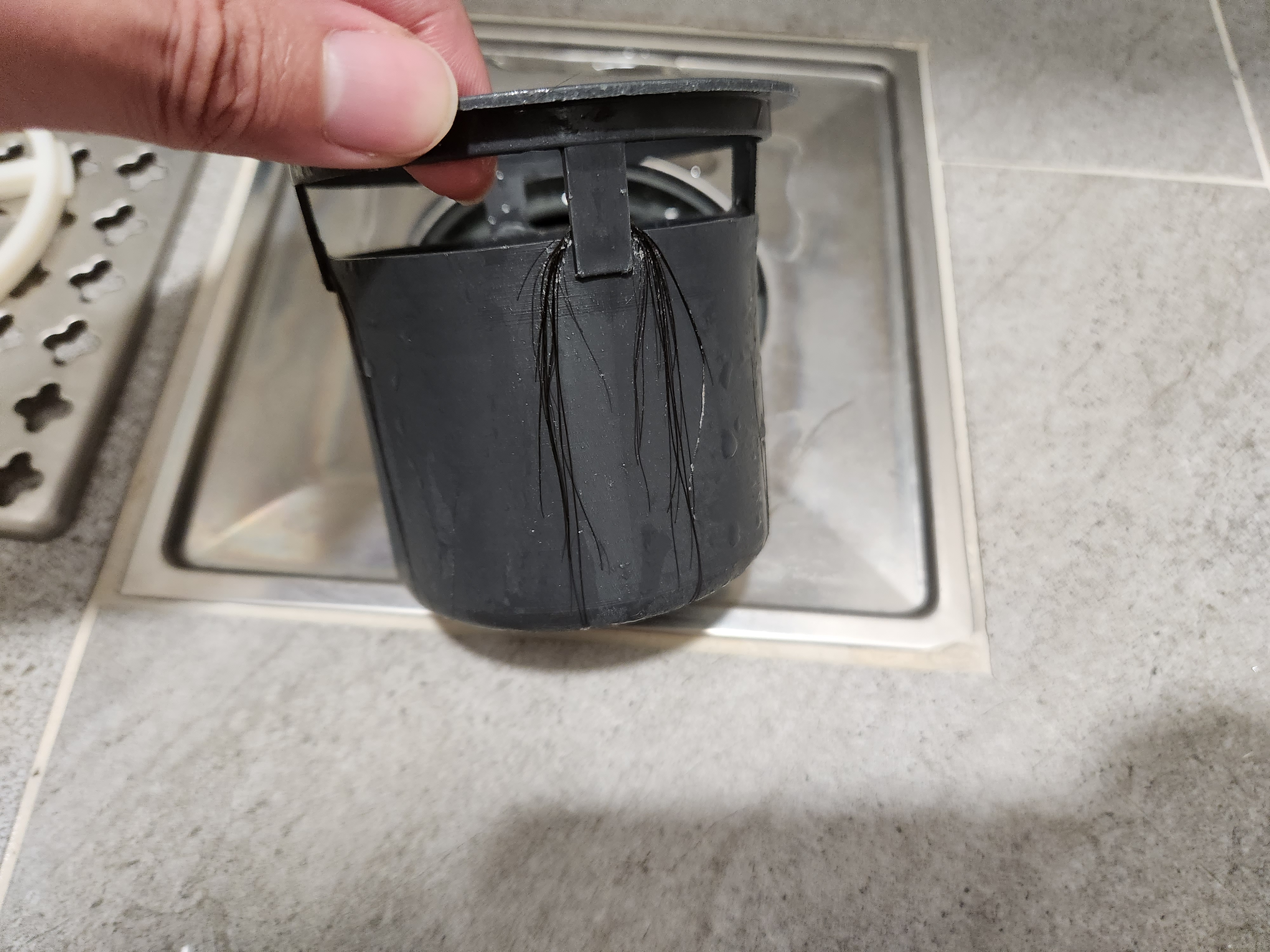 그럼 안쪽에 또 다른 거름망이 있는데요, 물이 빠져나가는 과정에서 여기에 머리카락 및 이물질이 많이 걸립니다.